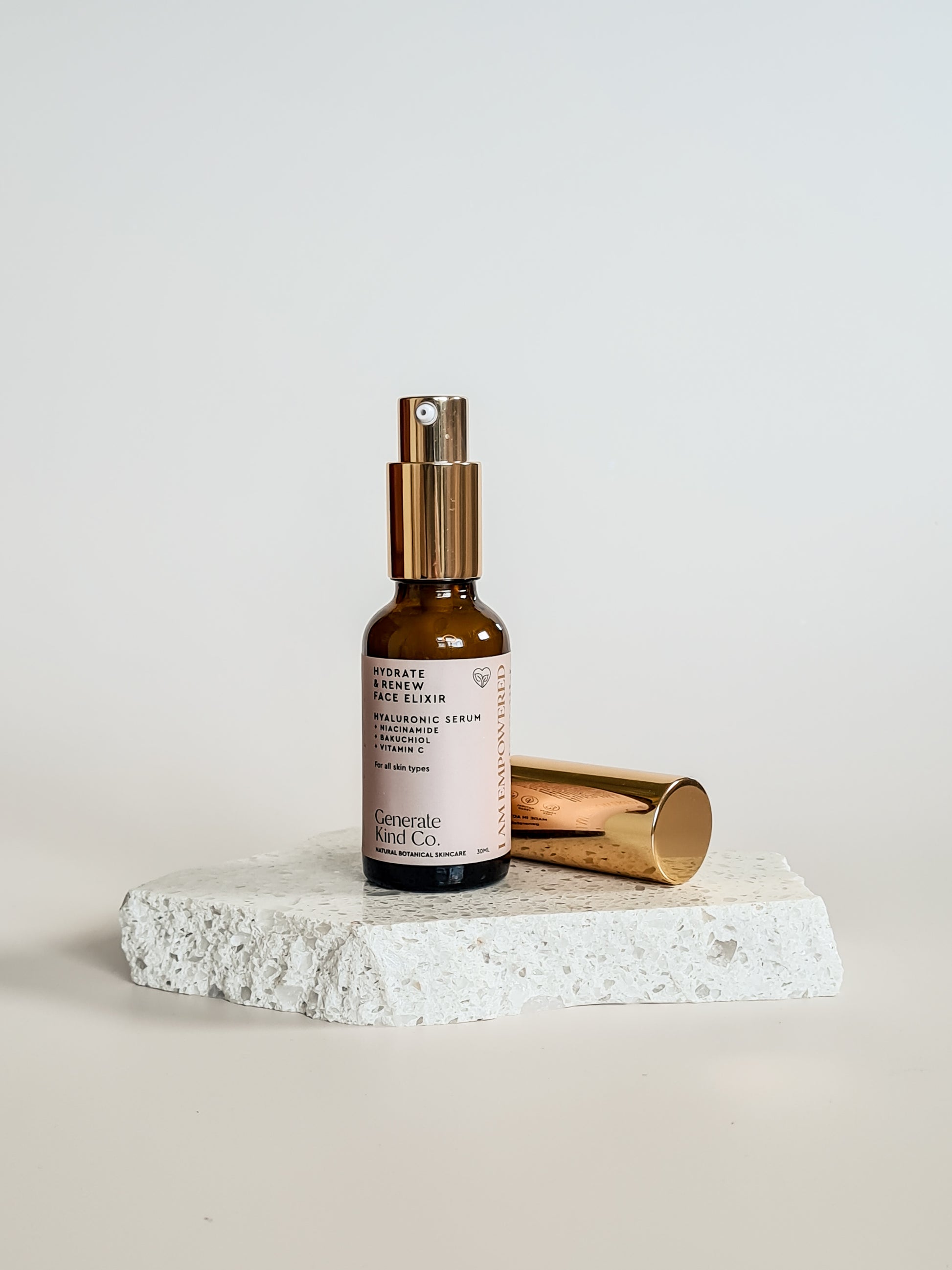 Complete your skincare ritual by combining our Hyaluronic Serum with our Nourish & Glow or Calm & Restore Face Oil and/or Face Cream to lock in hydration.