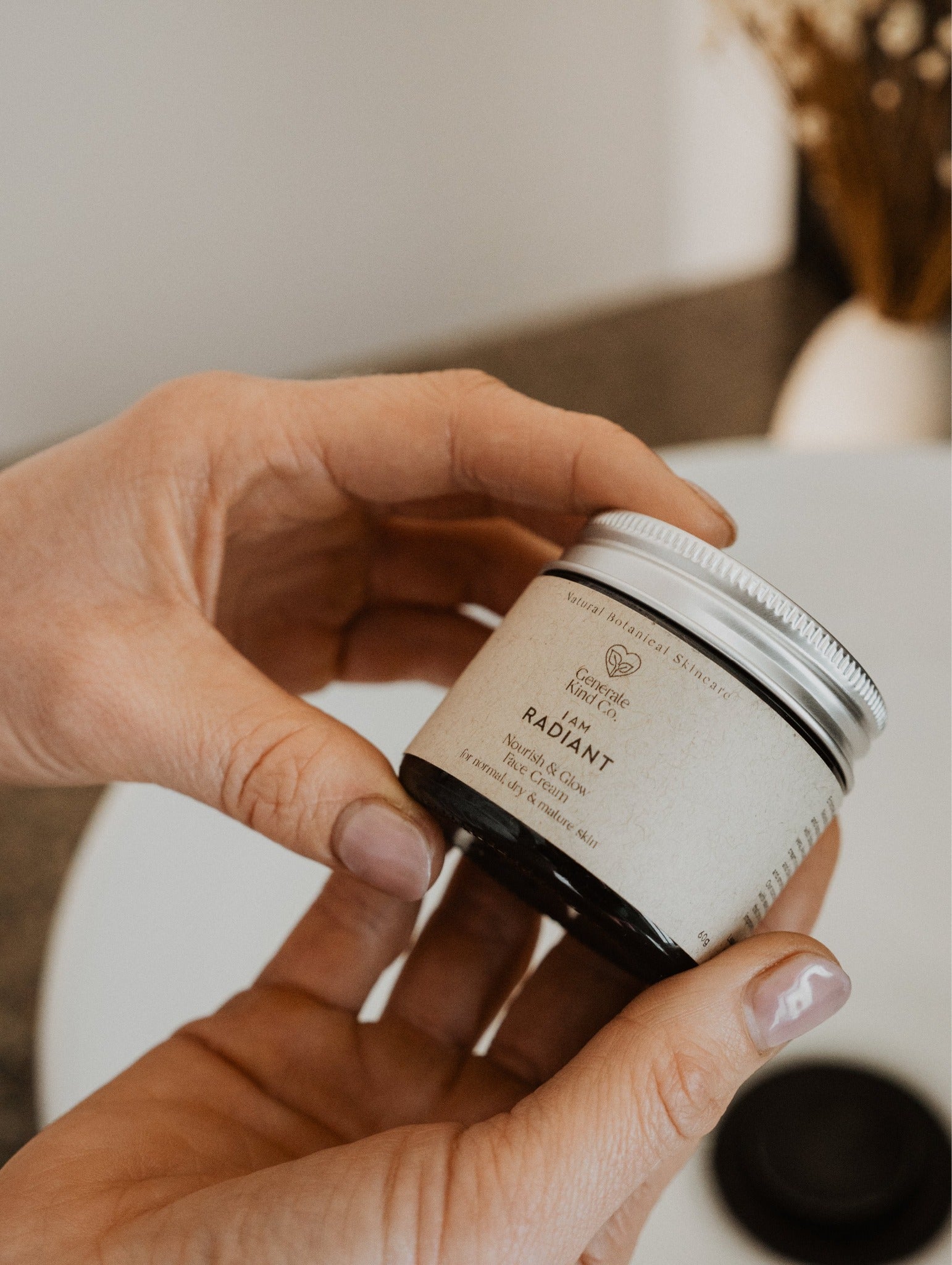 Enriched with natural plant actives, our Nourish & Glow Face Cream is a restorative daily essential for normal, dry, mature and aging skin types. Handcrafted with a blend of Blackcurrant, Green Tea, Aloe Vera, Rosehip, Avocado and Kiwifruit, it delivers intense hydration while supporting circulation, collagen production and skin elasticity.